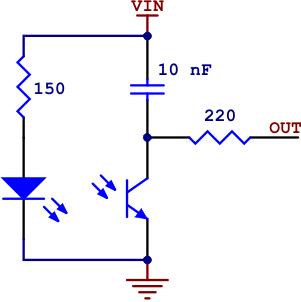 Se puede ver el montaje anterior de fototransistor y condensador