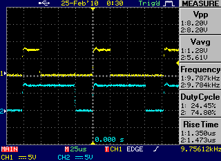 motor derecho (M1) una señal con un ancho de pulso del 25% y en